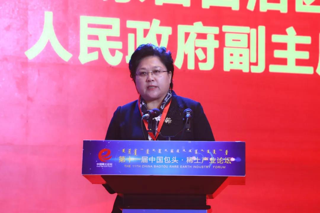 艾丽华在致辞中指出,党中央一直以来高度重视和关心内蒙古发展,习近平总书记先后于2009年、2014年、2017年、2019年四次来内蒙古调研考察和出席有关活动,并连续两年参加全国“两会”内蒙古代表团审议,针对稀土产业发展,作出了重要指示和要求,强调“要转变‘挖土卖土’依靠资源发展传统模式,探索以生态优先、绿色发展为导向的高质量发展新路子”。这充分体现了总书记对稀土等产业发展的重视和期望,为自治区推动稀土产业高质量发展提供了根本遵循。包头作为“稀土之都”,一定要牢记总书记的殷切嘱托,全力做好创新驱动、转型带动、政策推动“三篇文章”,彻底改变“挖土卖土”状况,加强稀土上下游产业协同联动,加大技术研发力度,不断提高产品科技含量和附加值,实现稀土产品高端化和稀土产业高级化,实现稀土产业绿色发展、高质量发展。![]()